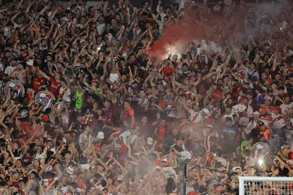 En el transcurso del partido, en el que el River debía conseguir al menos tres goles para igualar la serie, sus fanáticos recibieron a su equipo con un espectáculo de bengalas de luz y humo rojo que cubrió el estadio en su totalidad.