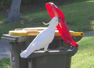 Cacatúas aprenden a levantar las tapas de botes de basura