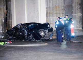 Un auto choca contra la Puerta de Brandemburgo de Berlín