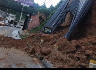 PMT de Santa Catarina Pinula limpia derrumbe en carretera a Muxbal