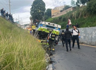 Mixco: bus vuelca en el puente Tinco en el extremo de...