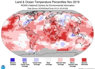 Noviembre de 2019 fue el segundo más caluroso en el mundo...