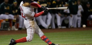 Mookie Betts conectó una roleta con dos outs que pegó en la tercera base y se desvió al jardín...