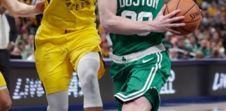 Gordon Hayward y Marcus Morris se encargaron de hacer labores de limpieza ayer.