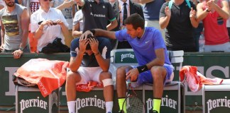 El español Nicolás Almagro se retiró hoy del Abierto de tenis de Francia con un llanto descontrolado tras lesionarse la rodilla izquierda y el...