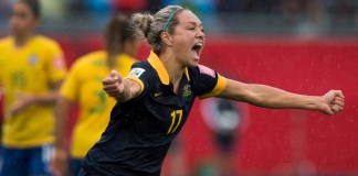 Kyah Simon anotó a los 80 minutos luego de ingresar como suplente para dar a Australia su primera victoria en una fase eliminatoria...