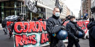 Policías y manifestantes se enfrentaron hoy en una masiva protesta contra las restricciones impuestas a causa de la pandemia de coronavirus que...