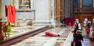 Durante el Oficio de la Pasión de Cristo, de Viernes Santo, día en el que la Iglesia recuerda la crucifixión y...