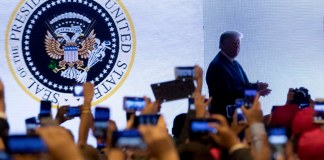 La Casa Blanca dijo hoy que no advirtió que el sello presidencial exhibido durante un discurso del presidente Donald Trump estaba alterado para mostrar...