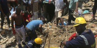 Las autoridades cavaban frenéticamente entre los escombros hoy en Nigeria tras el desplome de una escuela de tres pisos mientras...