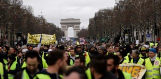Miles de manifestantes franceses del movimiento de los chalecos amarillos marcharon hoy por 16to fin de semana consecutivo en París y...