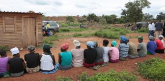 Cientos de familiares, miembros de la comunidad y otras personas se sentaron ayer sobre pilas de tierra y rocas o...