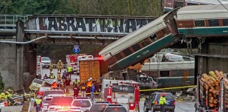 Varias personas murieron cuando un tren de pasajeros descarriló sobre una autopista en el estado de Washington, en el noroeste de Estados Unidos,...