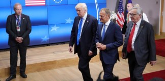 El presidente estadounidense, Donald Trump, y los titulares de la Comisión y el Consejo europeos, Jean-Claude Juncker y Donald Tusk, se reunieron hoy en...