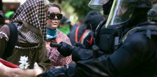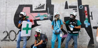 Oculta bajo un puente, la joven voluntaria mueve las manos a toda prisa para entablillar el tobillo ensangrentado de un fotógrafo. Sólo...