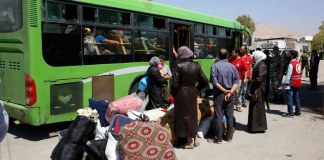 Autocares cargados con unos 300 sirios residentes en un barrio de Damasco controlado por los rebeldes y que está sitiado, comenzaron a abandonar...
