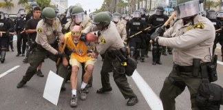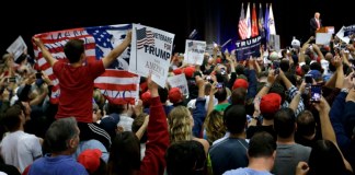 Policías y manifestantes se enfrentaron en la tarde de ayer durante un mitin electoral del precandidato republicano a la presidencia Donald Trump en...