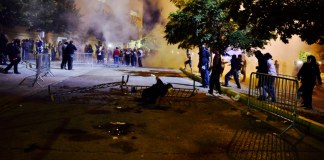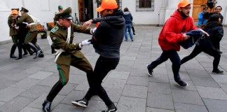 Efectivos antimotines reprimieron violentamente con chorros de agua y gases lacrimógenos, lanzados en las inmediaciones de un hospital, a decenas de adolescentes que...