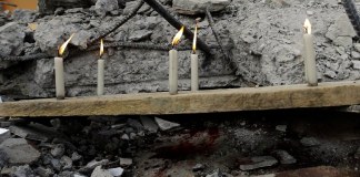 Una gigantesca bandera de Ecuador se desplegó el lunes cerca de la playa de Pedernales para conmemorar un mes del devastador terremoto que...