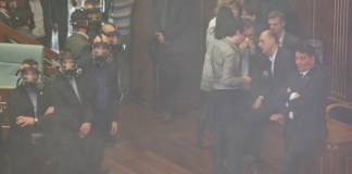Pese a controles de seguridad en la entrada, legisladores opositores volvieron a usar gas lacrimógeno para impedir el funcionamiento del Parlamento de Kosovo...