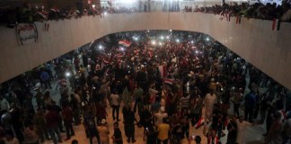 Decenas de manifestantes saltaron los muros derrumbados que rodean la altamente fortificada Zona Verde de Bagdad, y fueron vistos irrumpiendo al parlamento con banderas...