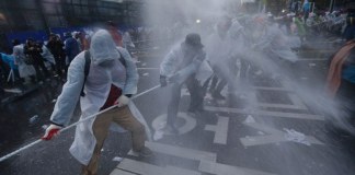 La policía utilizó gases lacrimógenos y cañones de agua el sábado en choques contra manifestantes contrarios al...
