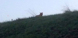 Un gran felino que fue visto hoy cuando cruzaba una autopista, pasaba furtivamente por una gasolinera y burlaba a...