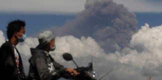 Erupciones de cenizas de cinco volcanes oscurecieron el cielo sobre partes del archipiélago de Indonesia hoy y forzaron el cierre de tres aeropuertos.
