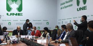 En una citación de la Unidad Nacional de la Esperanza (UNE), en la que se excusó la ministra de Salud, Amelia Flores,...