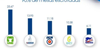 La Unidad Nacional de la Esperanza (UNE) lidera las diputaciones por el Listado Nacional en el Congreso de la República con un...