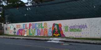 Este día jóvenes de distintas organizaciones sociales pintaron un mural afuera de la sede de la Comisión Internacional Contra la Impunidad en...
