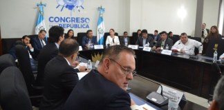 Durante una citación del bloque Unidad Nacional de la Esperanza (UNE), a la que acudieron los presidentes del Organismo Judicial (OJ) y...