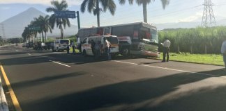Una colisión de 6 vehículos en el km 56 de la autopista Palín-Escuintla, hacia el sur, dejó 10 personas heridas que...