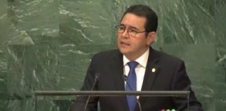 El mandatario Jimmy Morales dijo en un discurso ofrecido ante la Asamblea General de Naciones Unidas que su gobierno tiene "cero...