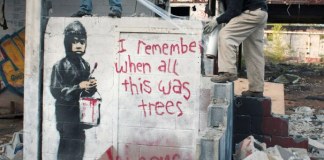 Una obra pintada en una antigua fábrica automotriz de Detroit y que los galeristas atribuyen al escurridizo artista británico de...