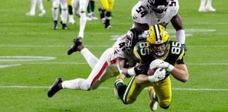 Aaron Rodgers conectó con el tight end Robert Tonyan en tres de sus cuatro pases de touchdown y los Packers...