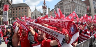Aproximadamente 15 mil hinchas celebraron al doble campeón Bayern Múnich en la muniquesa plaza Marienplatz, tras el regreso del equipo de la final...