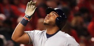 El primer cuadrangular del venezolano Jesús Aguilar en las Grandes Ligas rompió un empate en el séptimo inning y condujo...