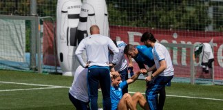 El portugués Cristiano Ronaldo encendió hoy las alarmas del Real Madrid al abandonar el entrenamiento con un golpe en el muslo derecho, aunque de...