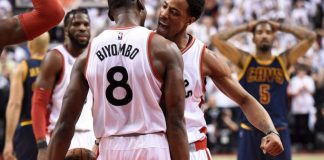 Kyle Lowry registró 35 puntos, incluyendo un enceste en bandeja en el último minuto, DeMar DeRozan tuvo 32 y los Raptors de Toronto empataron...