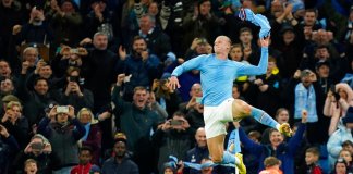 Erling Haaland festejó como Sergio Agüero.