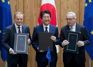 La Unión Europea y Japón firmaron hoy un acuerdo histórico que eliminará casi todos los aranceles en los productos que comercializan.