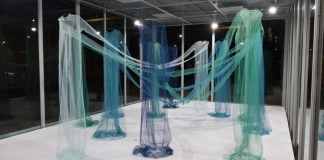 Un "ritual" de batas azules y verdes entrelazadas "conjura" desde el cubo del MuVIM para el fin de la pandemia, en...