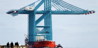 Las grúas de carga que se dicen serán las más grandes en operar en un puerto comercial de Estados...