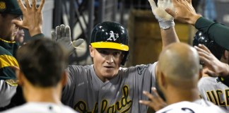 Khris Davis, Matt Chapman y Jed Lowrie aportaron sendos jonrones y los Atléticos de Oakland conectaron la friolera de 21 hits para...