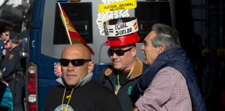 Miles de policías españoles atiborraron hoy una plaza central en Madrid para exigir incrementos salariales y mejores condiciones laborales.
