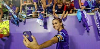 Alex Morgan, la estrella de la selección femenina de Estados Unidos, y otros dos futbolistas del Orlando City...