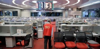Los últimos operadores de piso de la Bolsa de Valores de Hong Kong tomaban las últimas órdenes, al aprestarse este...