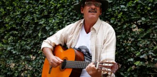Guillermo Torres, conocido como alias "Julián Conrado" o "el cantor de las FARC", cierra su presentación en un bar de Bogotá...