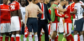 Hasta los mismos jugadores de Suiza le encontraron la gracia a sus frágiles camisetas.